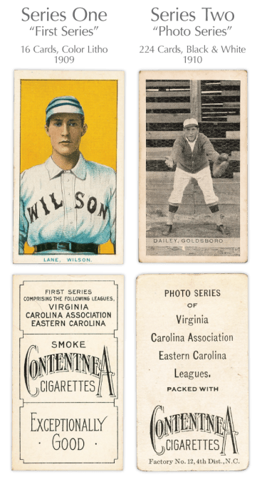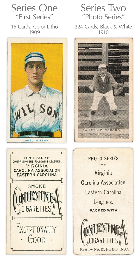 The scarce issue known as T209, included in packs of Contentnea Cigarettes, and produced by the Erwin-Nadal Company in Wilson, North Carolina, is the only tobacco card set issued in both color lithographs and black-and-white photographs. T209 intrigues many collectors due to its focus on the obscure southern leagues players it depicts, and because until now, very little information has been unearthed about its origins.