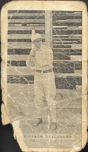 Reeves (Rocky Mount) and Steinbach (Goldsboro) appear both in the album and in the Pelaez collection, but have never previously been checklisted. Steinbach was with Goldsboro when the 1910 season opened, but left the team on June 2, ten days after the season began. Reeves had played for Richmond in 1907 but does not appear on their roster at the beginning of the 1910 season. He, like Steinbach and many others, may have been released by the team, or asked for his release, after the season began.